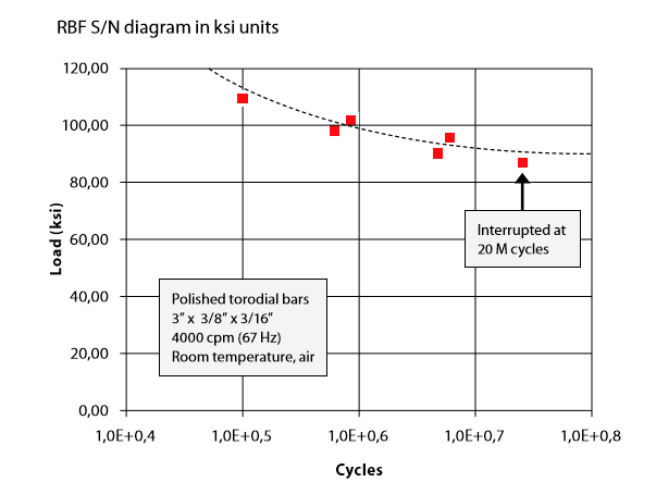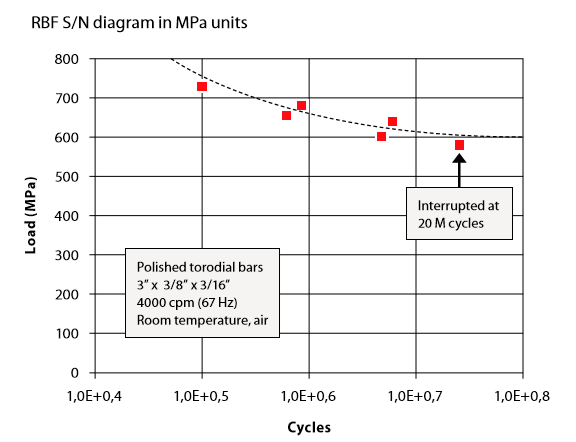 【図2】Arcam ASTM CoCr F 75耐疲労試験の基準上図はメートルMPaである。下図は米国製KSI